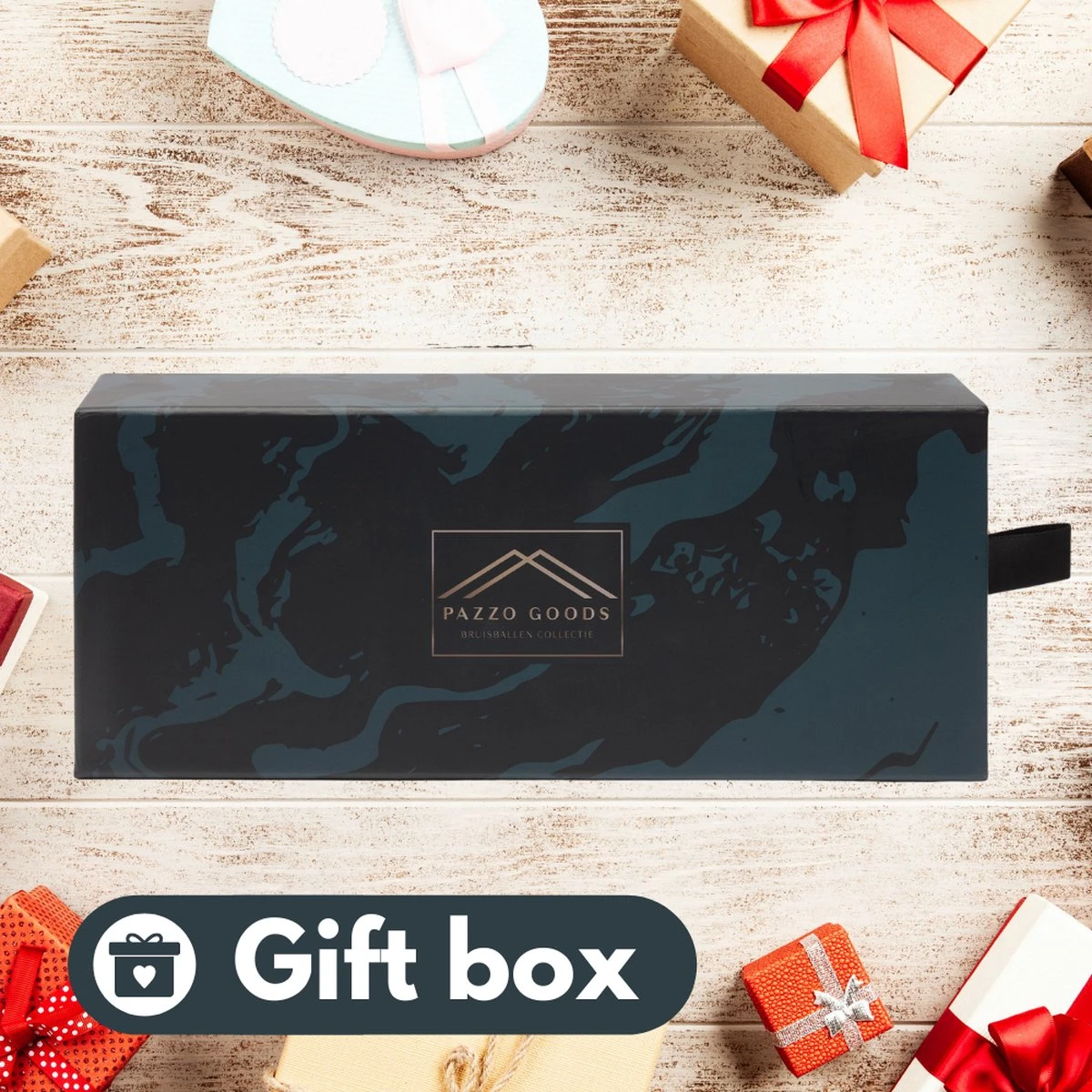 - Geniet nu van de 10 Heerlijke bruisballen van het merk Pazzo Goods. Elke Bruisbal weegt 80 gram. De geur word duidelijk aangegeven doormiddel van een wrapping rond de bruisbal. Tevens komt de set in een luxe verpakking.