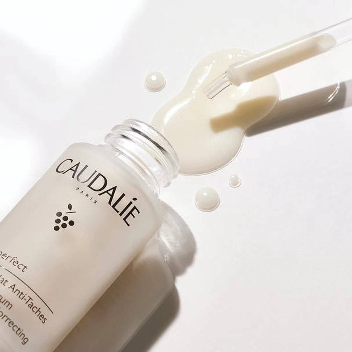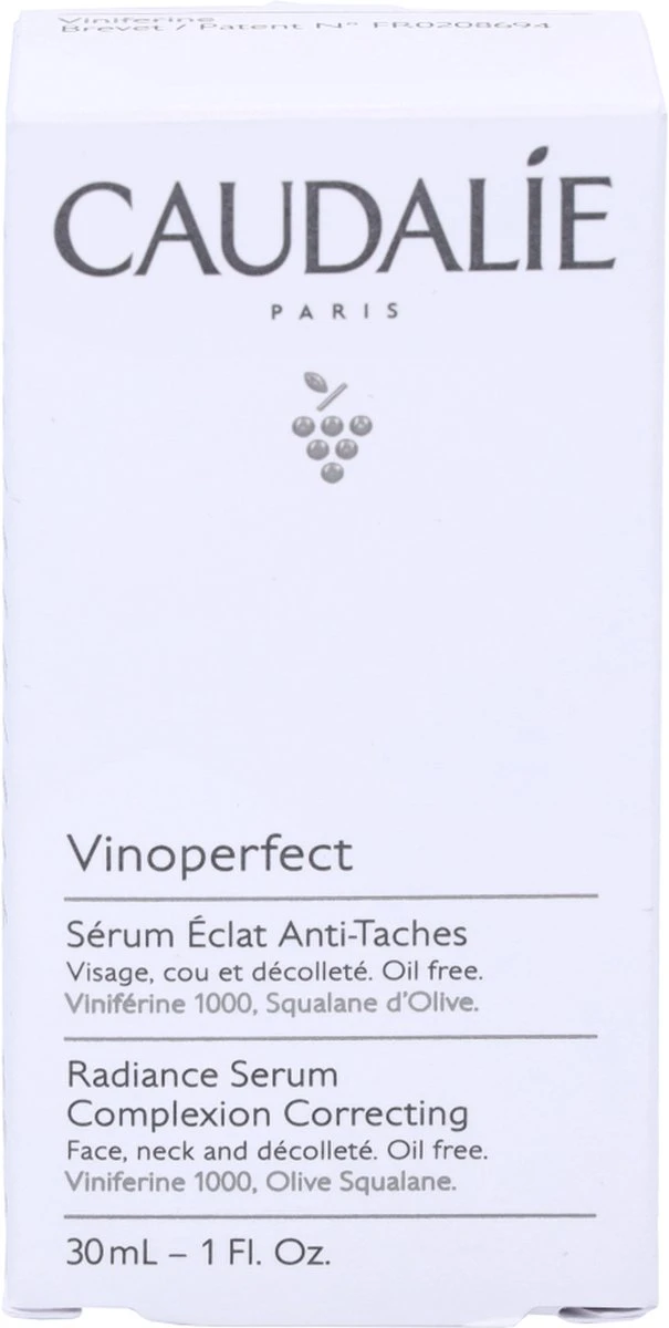 - Het belangrijkste bestanddeel van het Vinoperfect Serum is viniferine, het gepatenteerde ingrediënt van Caudalie afkomstig van het sap van de wijnstok, met een uitzonderlijke werking tegen vlekken die 62 keer meer doeltreffend is dan vitamine C.