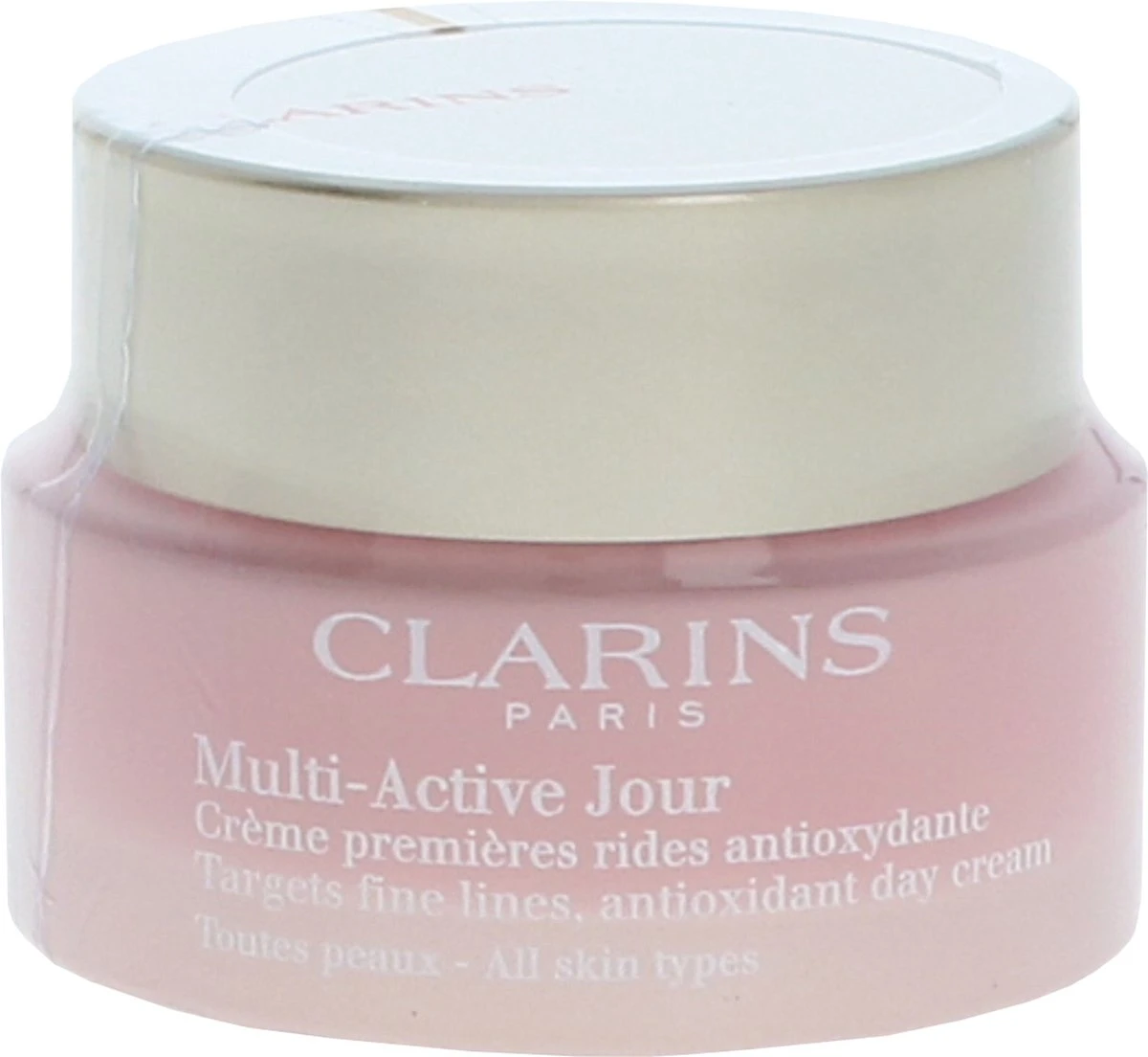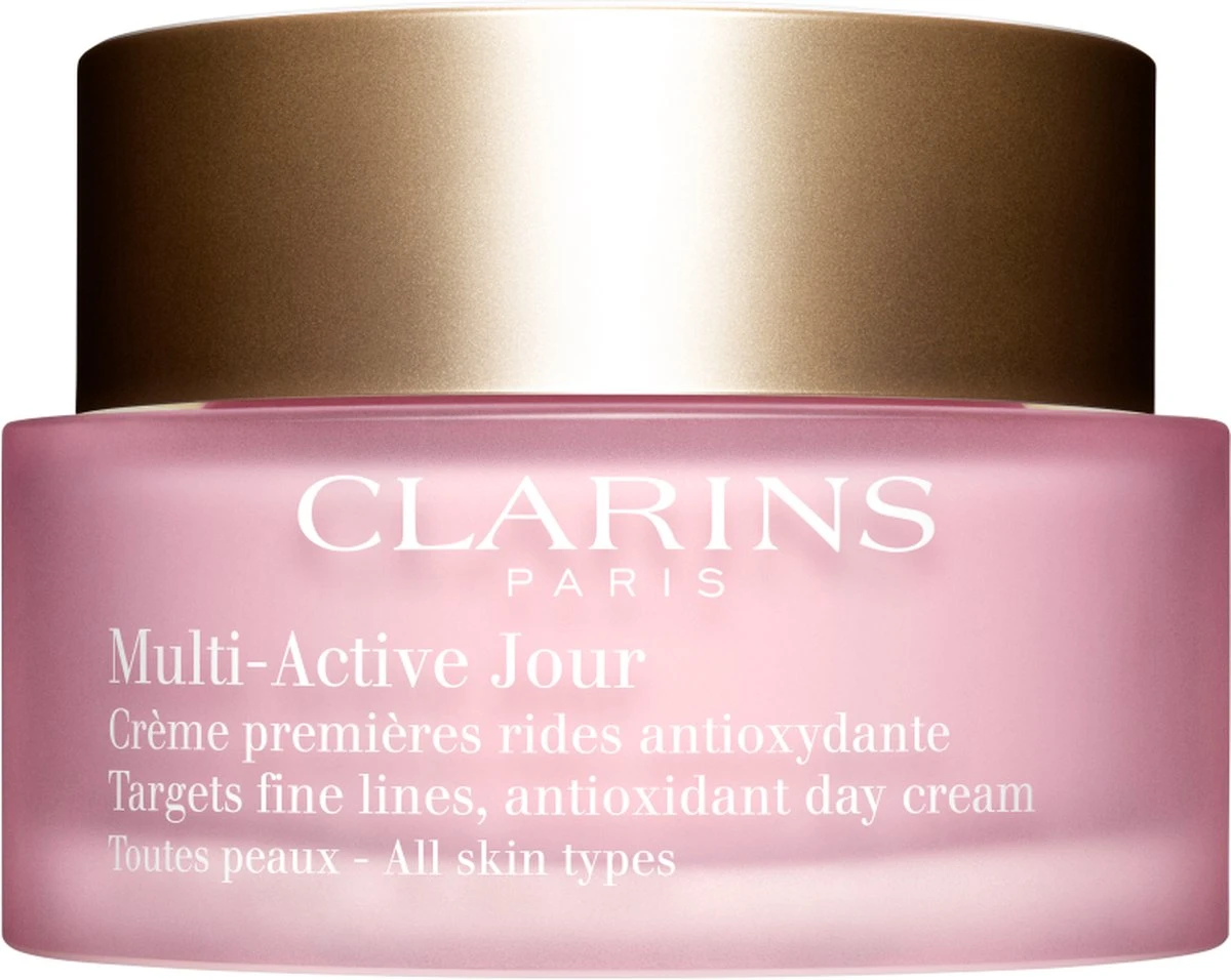 Multi-Active van Clarins is een verfrissende, hydraterende anti-aging dagcrème. Geformuleerd met het Anti-pollution complex van Clarins beschermt de crème de huid tegen schadelijke invloeden van buitenaf. Myrothamnus-extract helpt tekenen van huidveroudering door stress en vermoeidheid tegen te gaan en vermindert de eerste rimpels. Voor een stralende huid die haar kleur en glans hervonden heeft.