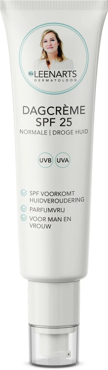 Om je gezicht te beschermen tegen huidveroudering en zonschade, ontwikkelde Drs Leenarts deze Dagcrème SPF25. Zonder parfum en onnodige toevoegingen, in handige pompflacon. Voor man, vrouw en voor de normale, droge huid en gevoelige huid.