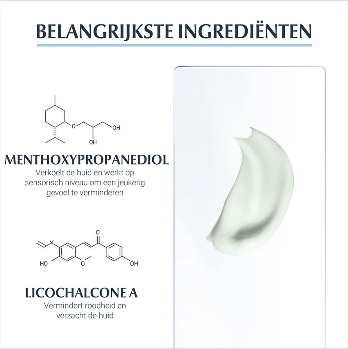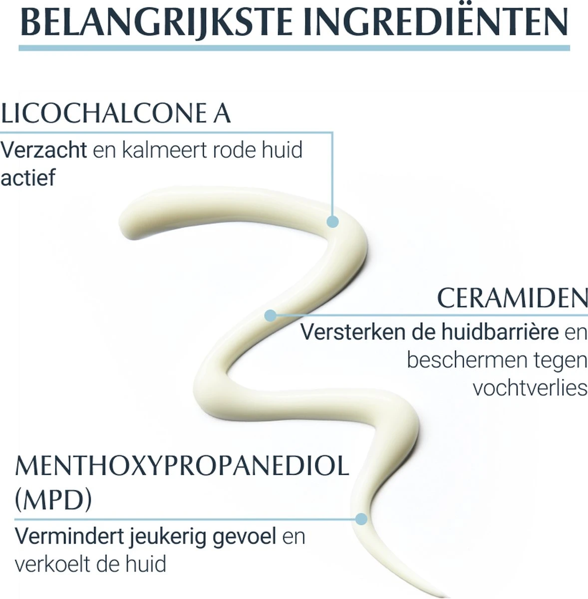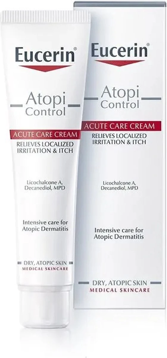 Eucerin AtopiControl Face Care Cream met 12% omega 6-vetzuren om een droge en harde huid te kalmeren en te voeden en de ontstekingsremmer en irritatieremmer licochalcone A, hydrateert, verzacht en vermindert ruwheid en verlicht tevens een jeukende en trekkerige huid. De huid voelt zacht aan en is merkbaar gladder. Er is klinisch bewezen dat deze geschikt is voor de atopische huid en kan worden gebruikt bij kinderen en baby’s ouder dan drie maanden.