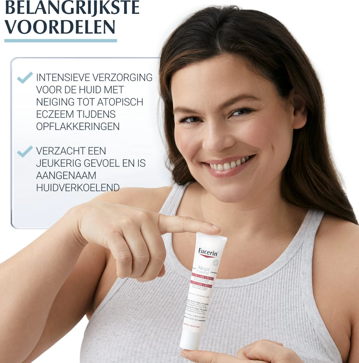 Als er flare ups optreden, moet Eucerin AtopiControl Face Care Cream worden gebruikt als aanvullende cosmetische verzorging, naast Eucerin AtopiControl Acute Care Cream.