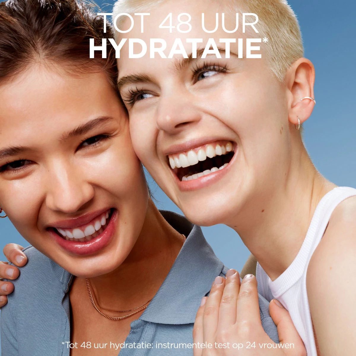 - Na 4 weken: de huid is zichtbaar intens gehydrateerd en voller volgens 84% van de vrouwen, gevoed volgens 93%, gekalmeerd volgens 84%, beschermt tegen droogheid volgens 93% en meer comfortabel volgens 93%***.
