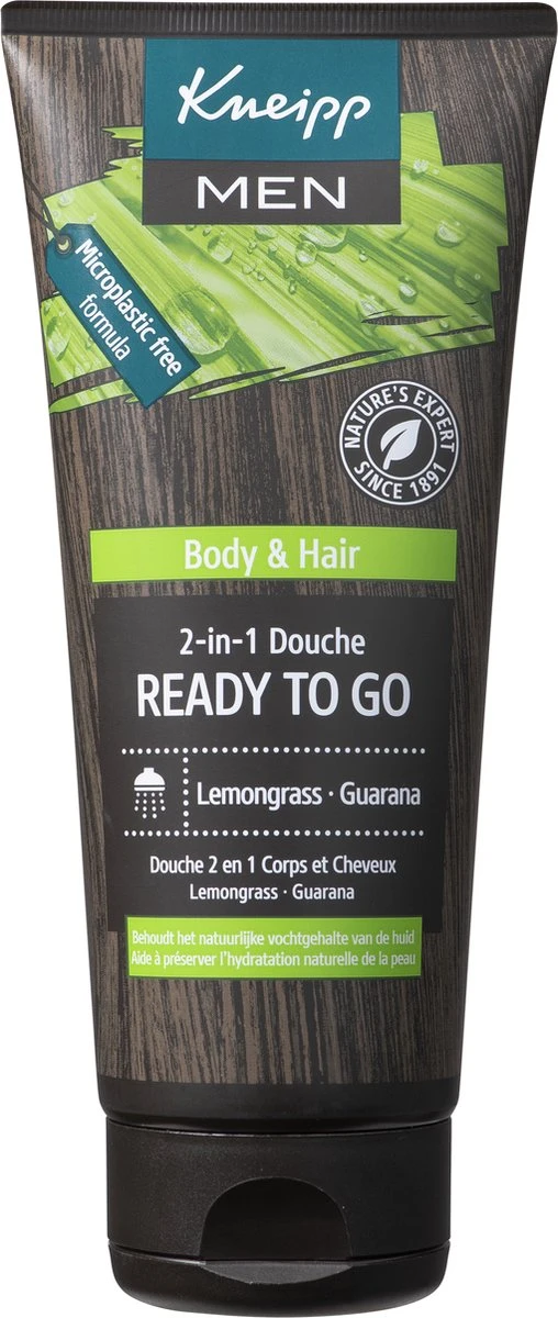 Ervaar de nieuwe verkwikkende kick van Kneipp® 2-in-1 douche Ready to Go. De natuurlijke verzorgende kruidenformule met citroengras en guarana minimaliseert het vochtverlies* en beschermt de huid tegen uitdroging. De dynamische geur is stimulerend en activerend terwijl huid en haar voorzichtig worden gereinigd.