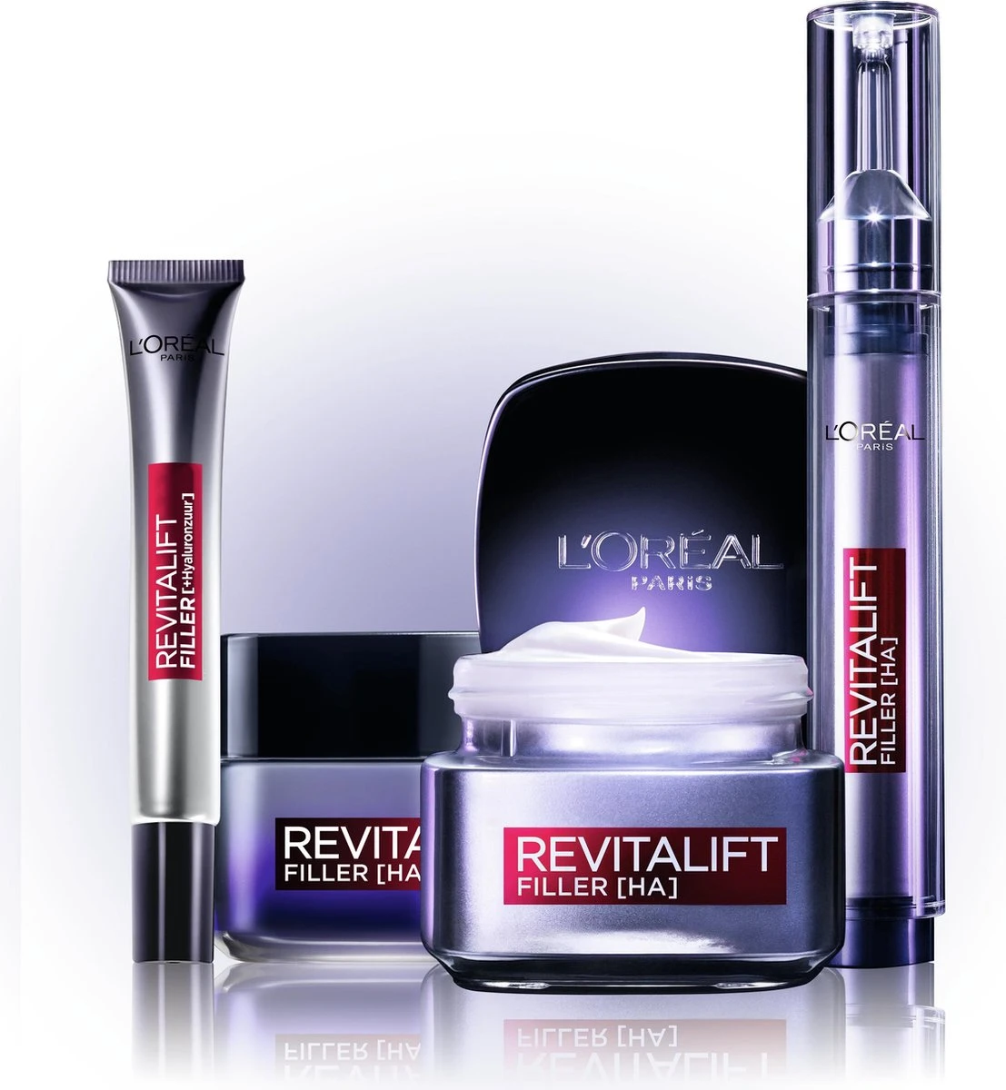 Revitalift Filler Oogverzorging bevat de hoogste concentratie hyaluronzuur van alle oogverzorgingsproducten van L’Oréal Paris. Dit zorgt ervoor dat de huid rondom de ogen gehydrateerd, veerkrachtiger en steviger wordt.