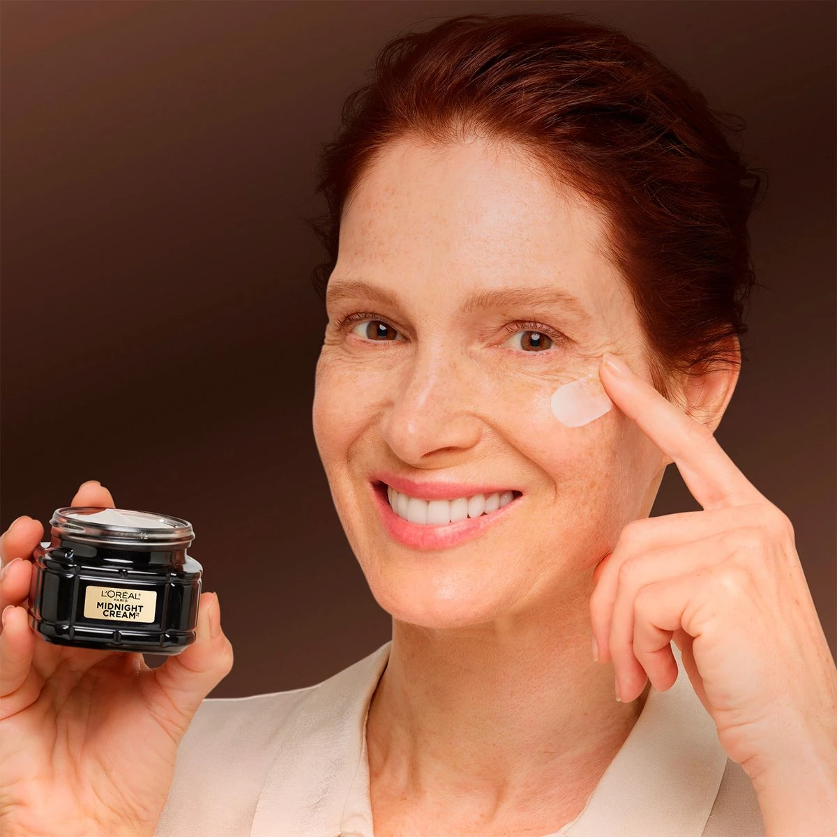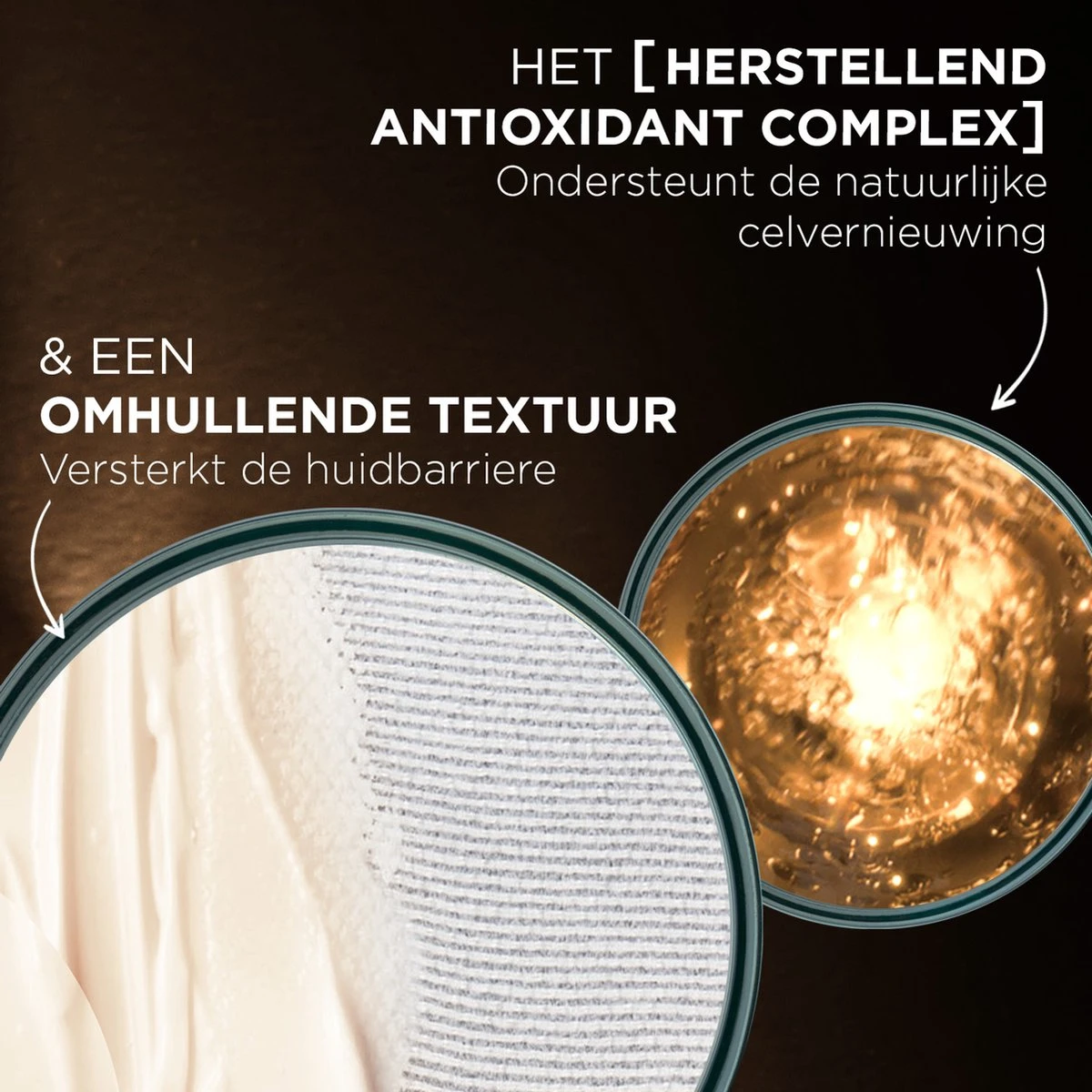Ontdek de magie van de nieuwe Midnight Cream van L’Oreal Paris Age Perfect. Dagelijkse agressies beschadigen de huidbarrière waardoor deze kwetsbaarder wordt en de huidveroudering versnellen. De nacht is het uitgelezen moment voor de huidbarrière om zich te herstellen. De Midnight Crème is geformuleerd met de kracht van antioxidanten in een omhullende textuur, om miljoenen nieuwe cellen te onthullen en de effecten van dagelijkse agressies tegen te gaan. Deze anti-aging nachtcrème is comfortabel in gebruik en bevat een doeltreffende formule met krachtige actieve ingrediënten voor een zichtbaar jongere huid. De gezichtscrème met gepatenteerde antioxidant en Vitamine E helpt de huidbarrière ’s nachts te herstellen, wanneer de huid het meest vatbaar is voor herstel. De Age Perfect Midnight Cream van L’Oreal is doeltreffend in het gladstrijken van rimpels, het verstevigen van de huid, en het egaliseren van de huidteint. Helpt de huidbarrière tot wel 1.5 keer sneller te herstellen. Geschikt voor alle huidtypes en huidskleuren.