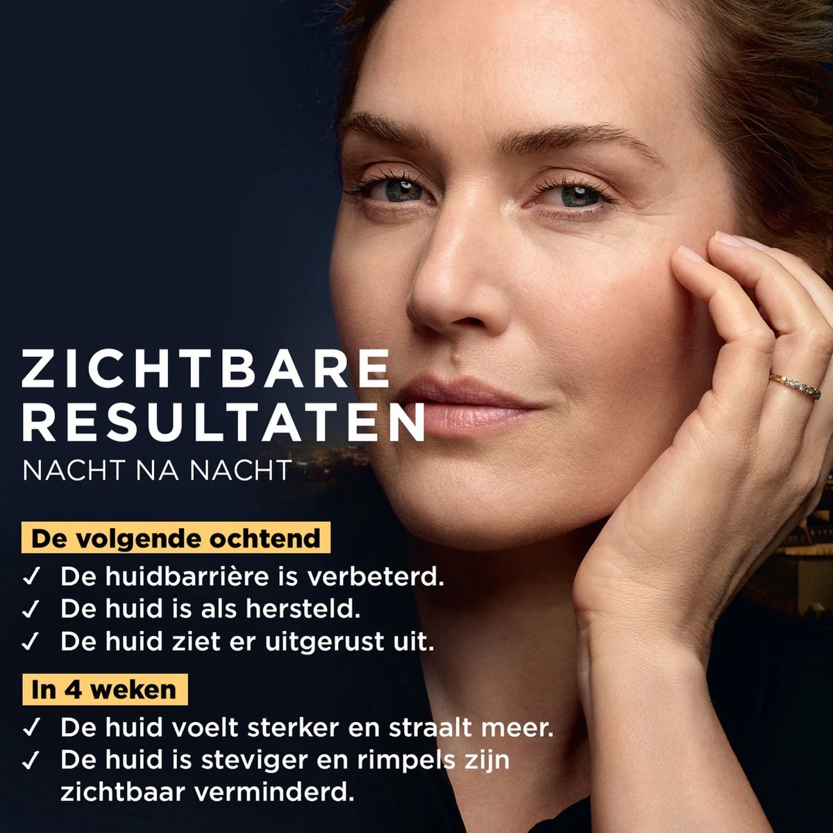 · Na 1 nacht: De huid is als hersteld en voelt ongelofelijk comfortabel aan. De huid ziet er uitgerust uit, zoals na een goede nachtrust.