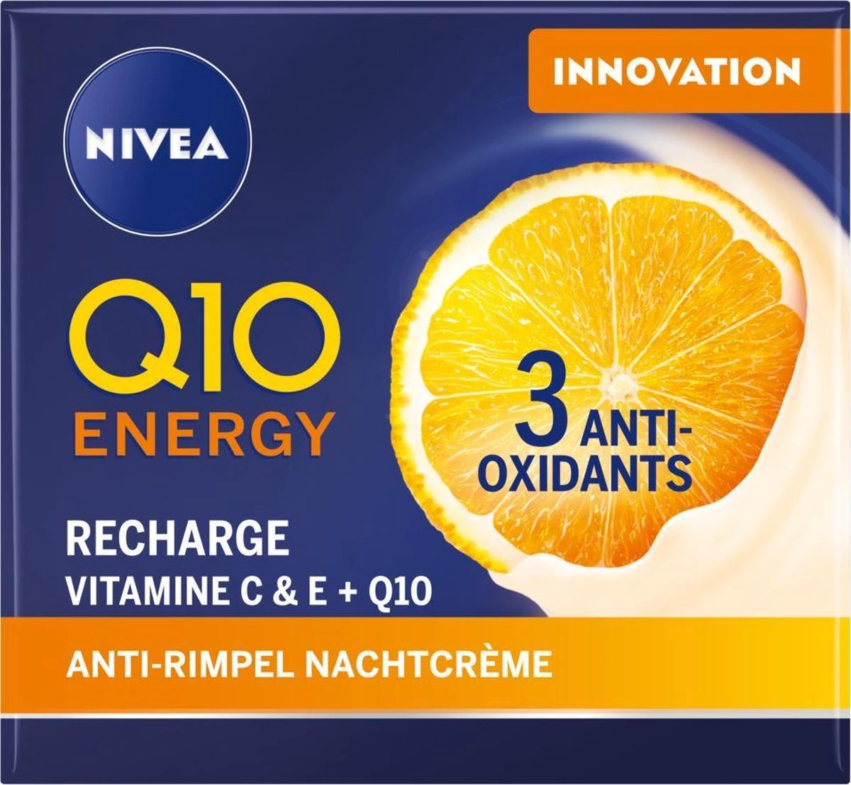 NIVEA Q10 Energy Recharging Night Care geeft je binnen acht uur een stralende huid en een gezonde uitstraling. De formule met vitamine C, vitamine E en Q10 verbetert de vochtopname van de huid en versterkt de huidbarrière. Het richt zich op belangrijke tekenen van stress, zoals lijntjes, saaiheid en levenloosheid. Krijg een jeugdiger en stevigere huid in slechts twee weken!