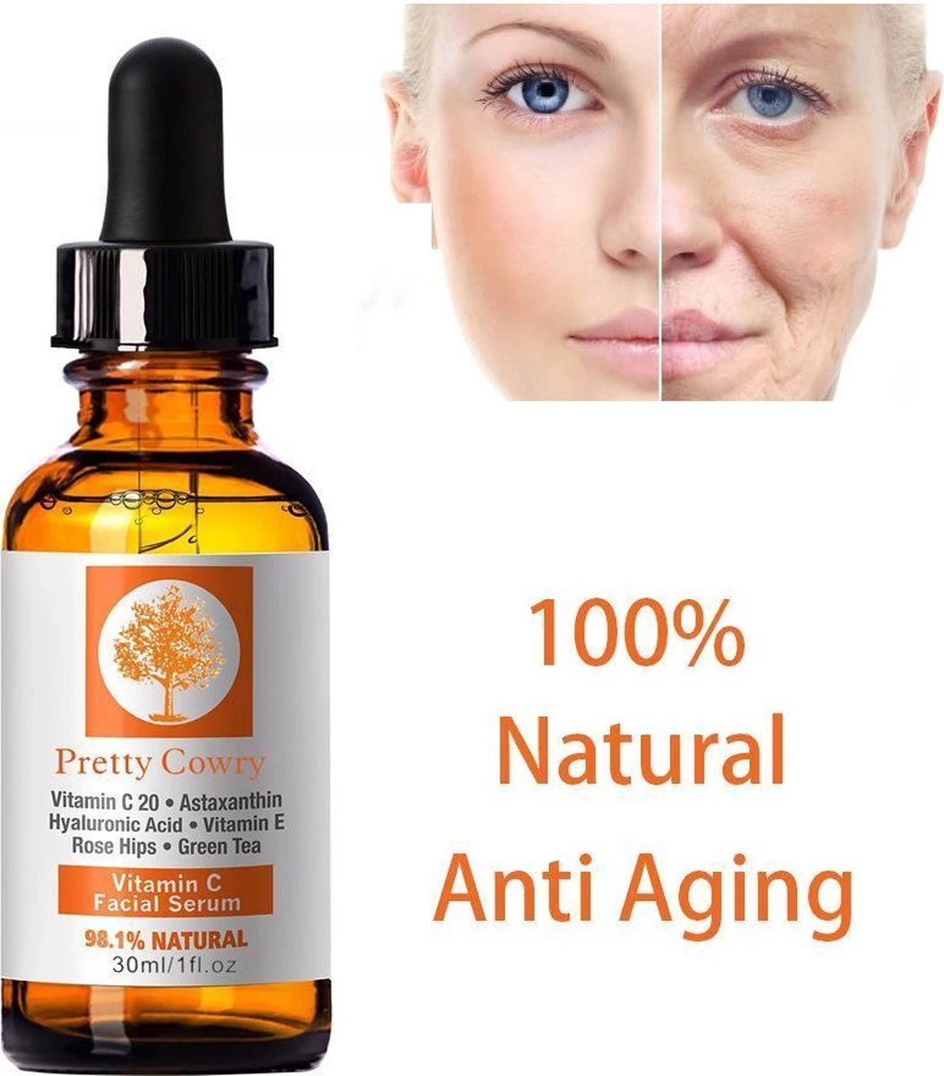 Vitamine C is onmisbaar voor een mooie huid, zeker als je ouder wordt of wanneer je huid veel wordt blootgesteld aan de zon, smog en andere schadelijke invloeden. Pretty Cowry Vitamine C Serum egaliseert je huid en vermindert rimpels en hyperpigmentatie. Het helpt je huid te herstellen van onder andere oneffenheden door de zon of puistjes en gaat roodheid tegen. Daarnaast zorgt Vitamine C ervoor dat je huid extra collageen (bindweefsel) aanmaakt voor een gezonde en mooie huid. Dankzij de ontstekingsremmende eigenschappen verminder je de kans op mee-eters en puistjes.