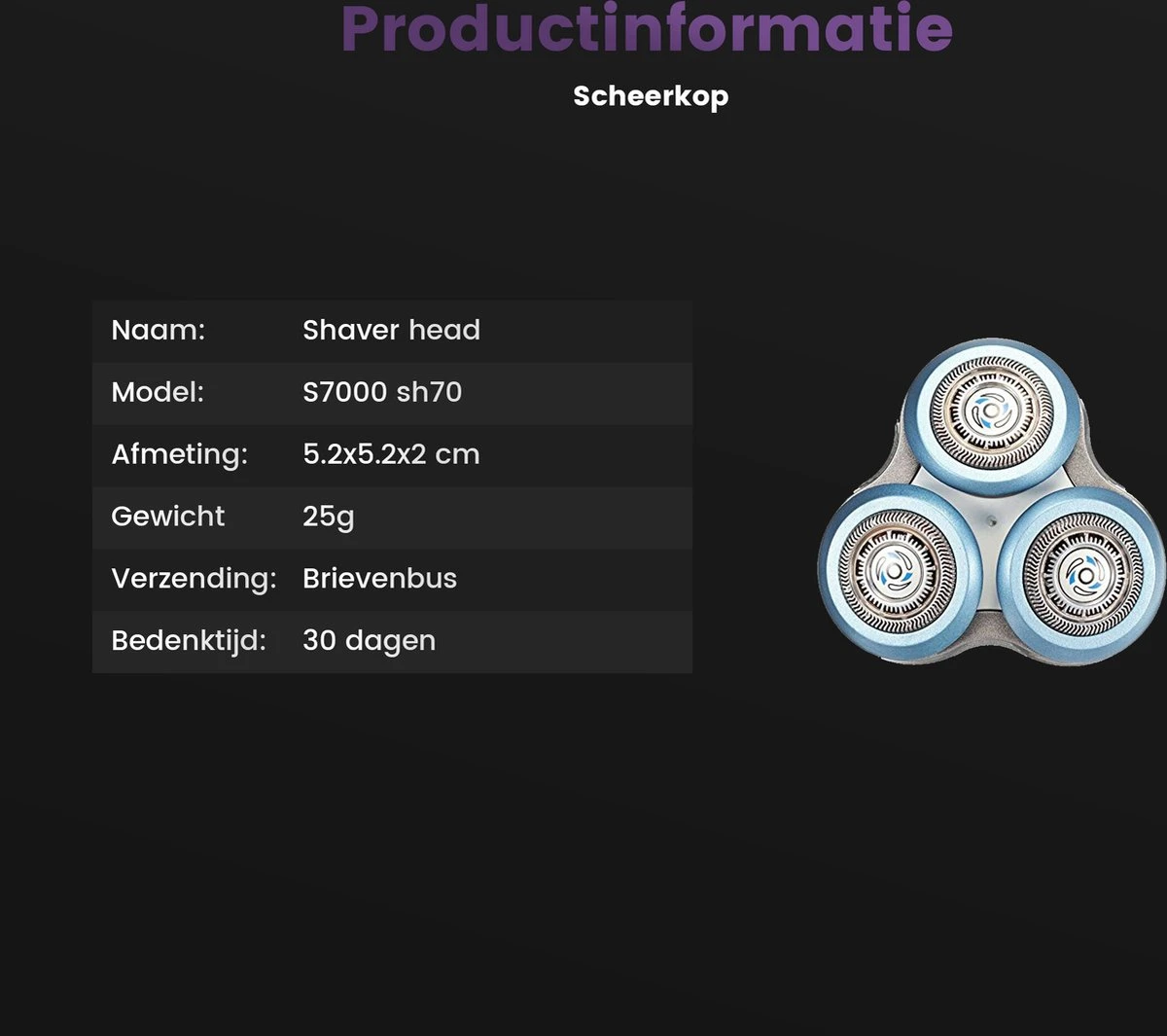 Deze scheerkop is een vervangend onderdeel geschikt voor de Philips s7000 sh70/50 series. Voor een glad en optimaal scheerresultaat zijn scherpe mesjes een must. Wij raden aan de scheerkop minimaal eens per jaar te vervangen. Op deze manier voorkom je botte mesjes, wondjes en heb je altijd het gewenste resultaat.