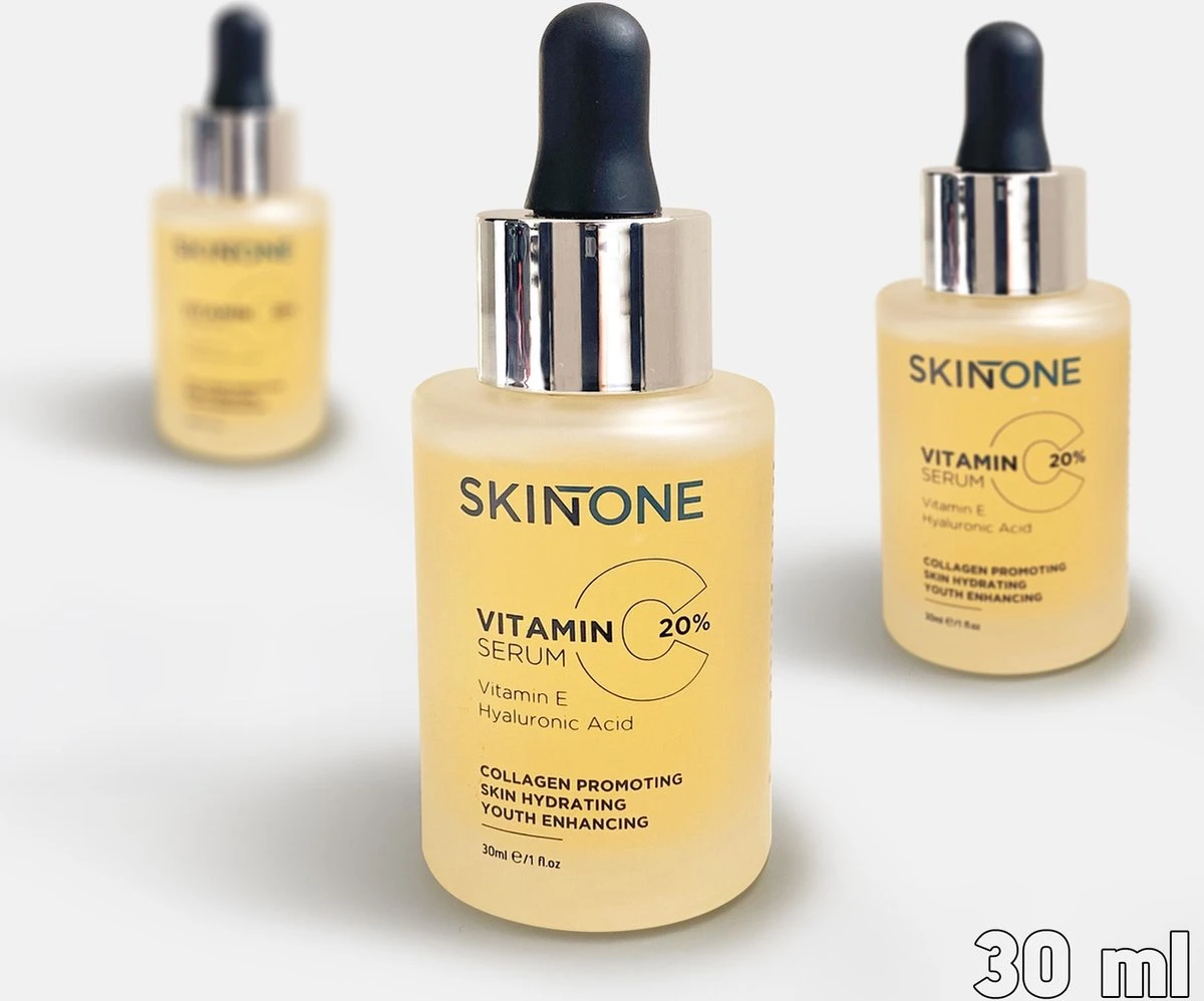 SkinTone® Vitamine C serum 20% is een serum dat het collageen activeert, doordat er stabiele 20% Vitamine C in is verwerkt. Het is efficiënt in de behandeling van zonschade, fijne rimpeltjes, acne en een onregelmatige teint. Uit onderzoeken is gebleken dat het serum bij regelmatig gebruik, pigmentvlekken 80% lichter kan maken en collageensynthese met 50% kan verbeteren, zonder de huid te irriteren of uit te drogen. Het zorgt voor diepe huidhydratatie en dus een stralende huid.