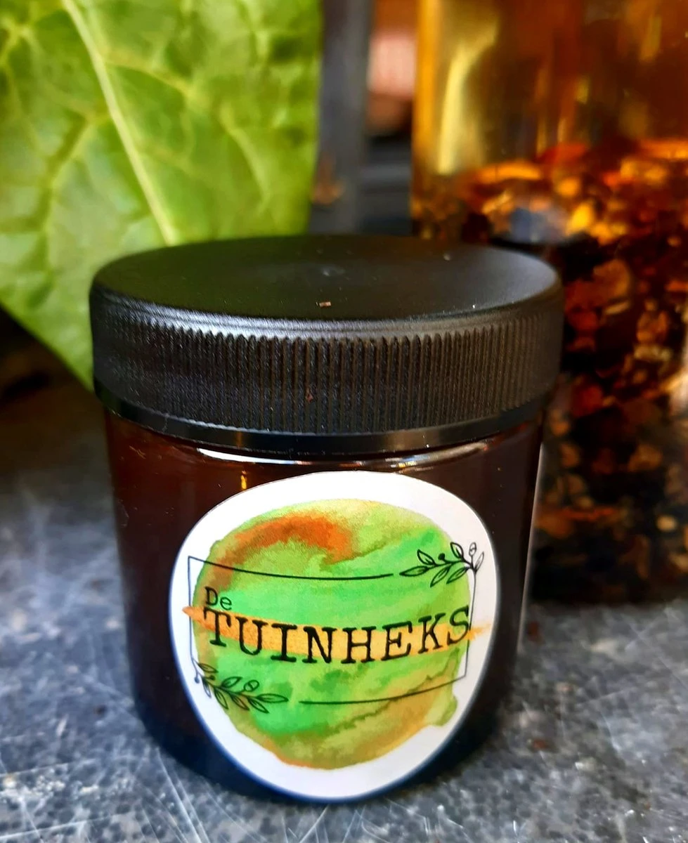 Verder zijn er geen enkele synthetische of andere toevoegingen gebruikt. Ook bevat deze zalf geen reuzel. Puur natuur dus, en met veel zorg & aandacht bereid volgens eigen receptuur van de Tuinheks.