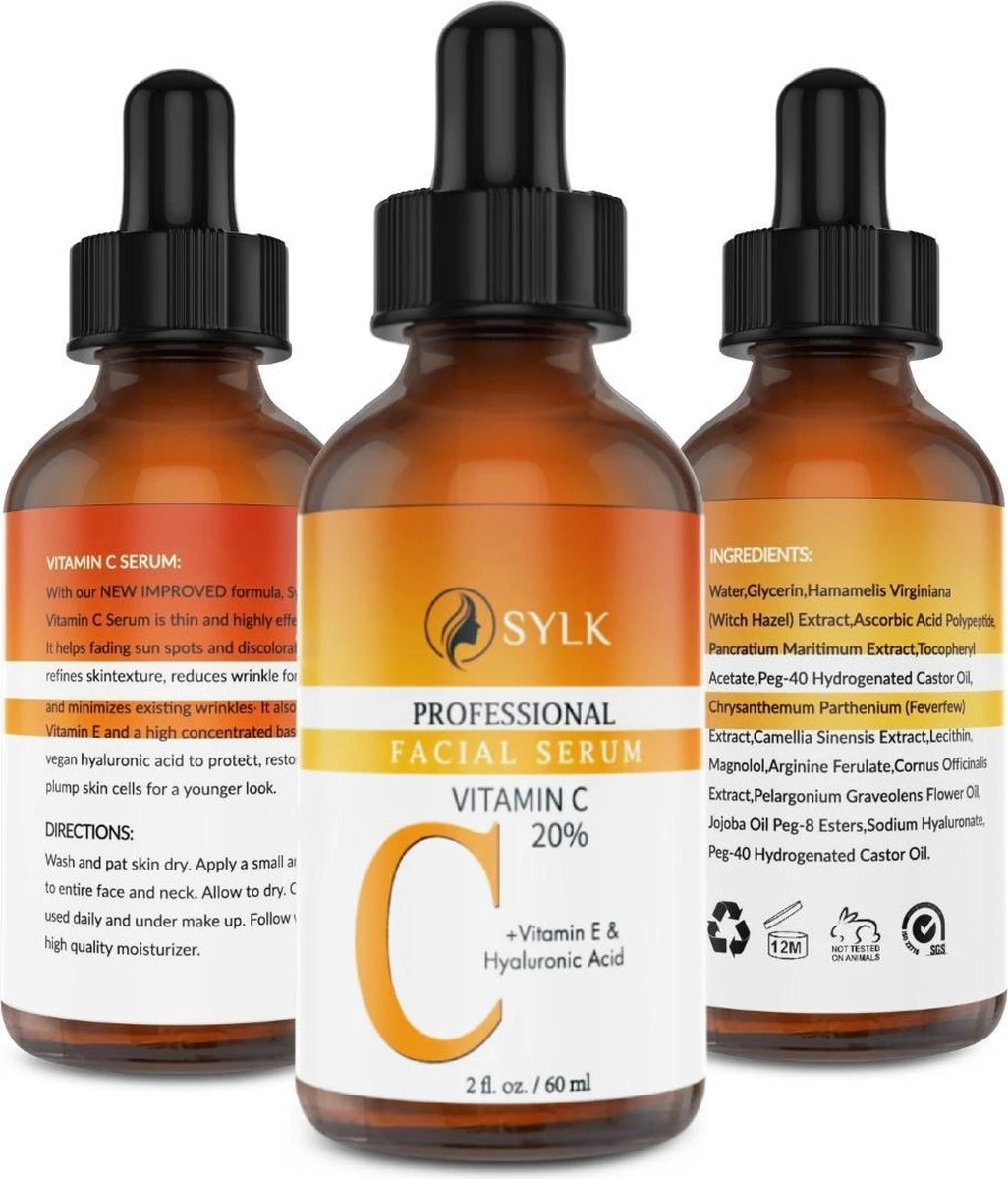 Wilt u uw huid de beste verzorging geven? Dan is Sylk Vitamine C Serum onmisbaar. Sylk brengt het best geteste gezichtsserum op de Nederlandse markt, en nu is het ook voor u verkrijgbaar! Het Sylk Vitamine C Serum combineert de hoogste kwaliteit vitamine C met Vitamine E en hyaluronzuur, creëert een krachtig antioxidanteffect dat de huid soepel doordringt en helpt om uw huid zuiver en egaal te houden.