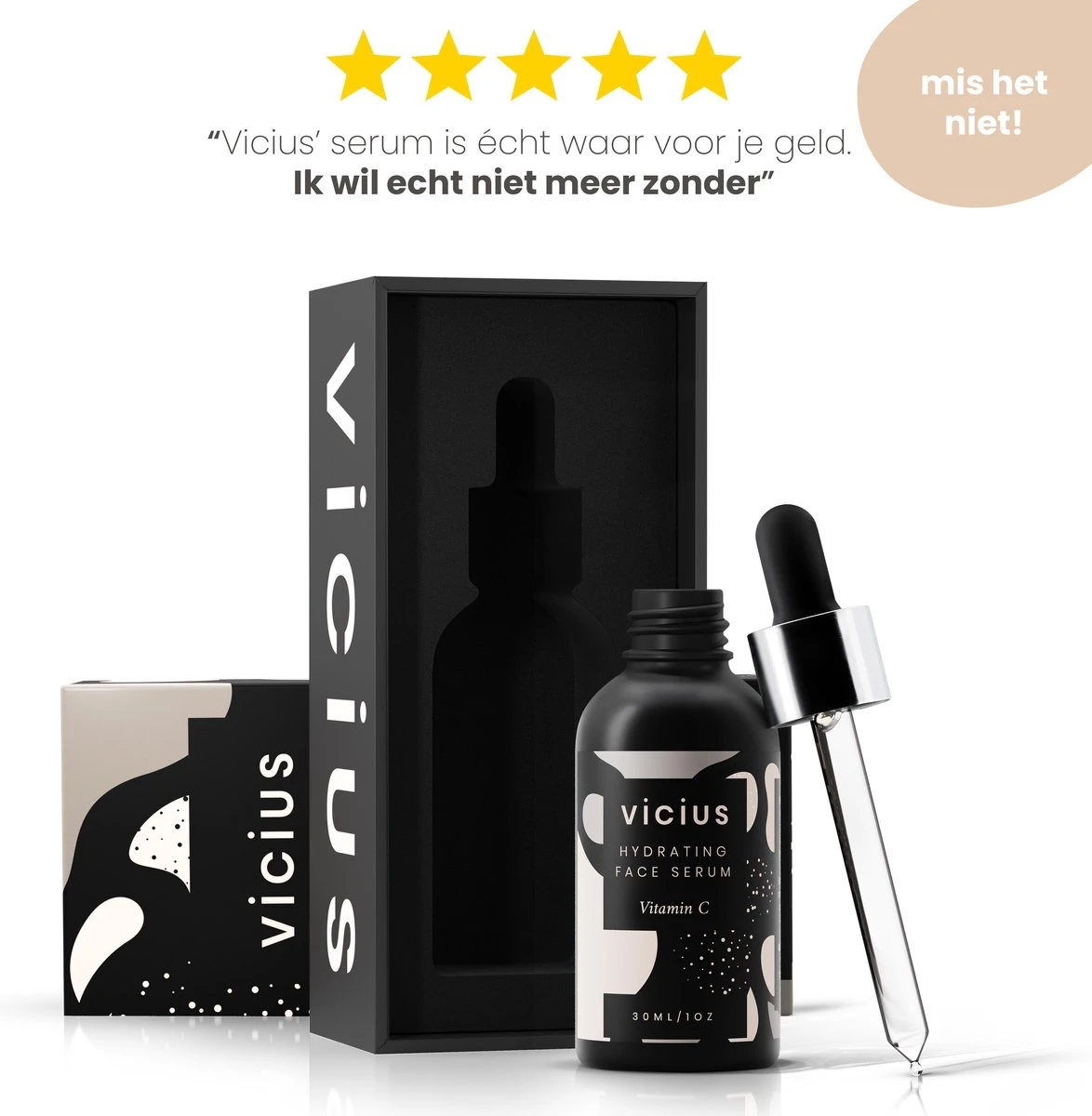 De glanzende, strakke en egale huid van menig covermodel of Hollywood ster komt dagelijks voorbij. Gezond. Stralend. Maar hoe? Vicius serum met Vitamine C, Hyaluronzuur & Vitamine E is vanaf nu jouw persoonlijke geheim!