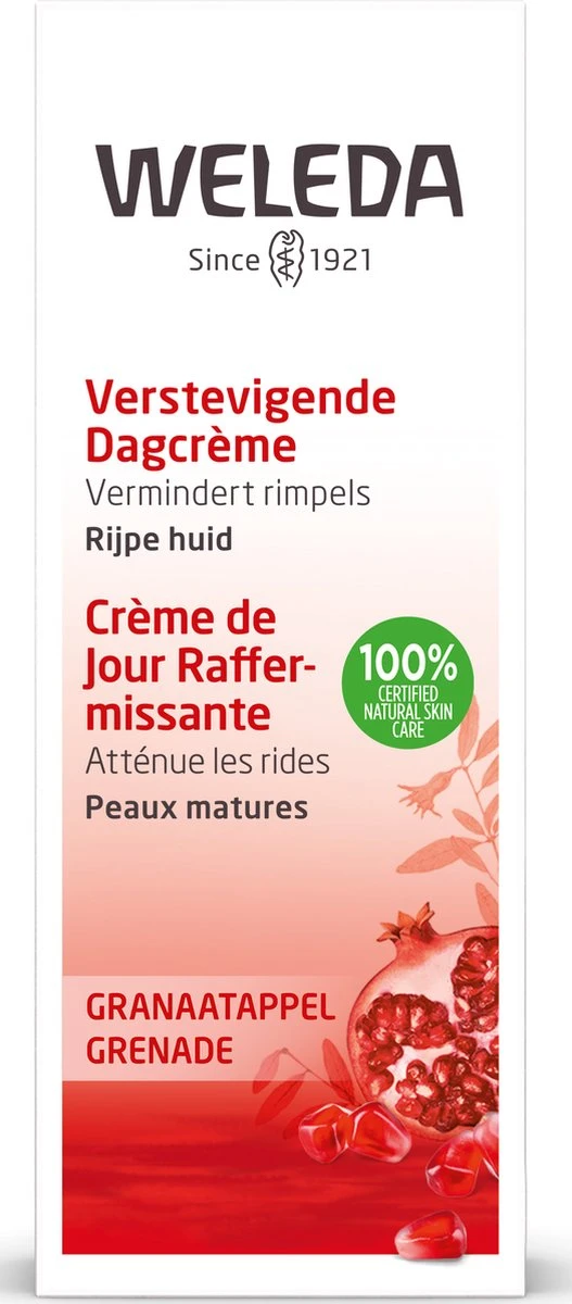 Verstevigende Dagcrème is een rijke crème met biologische granaatappelpitolie die de celvernieuwing stimuleert en door de krachtige antioxidanten beschermt tegen vrije radicalen. De huid wordt steviger en rimpels verminderen door de toegenomen elasticiteit en spankracht. Resultaat: de huid is gladder en krijgt een frisse en gezonde uitstraling.